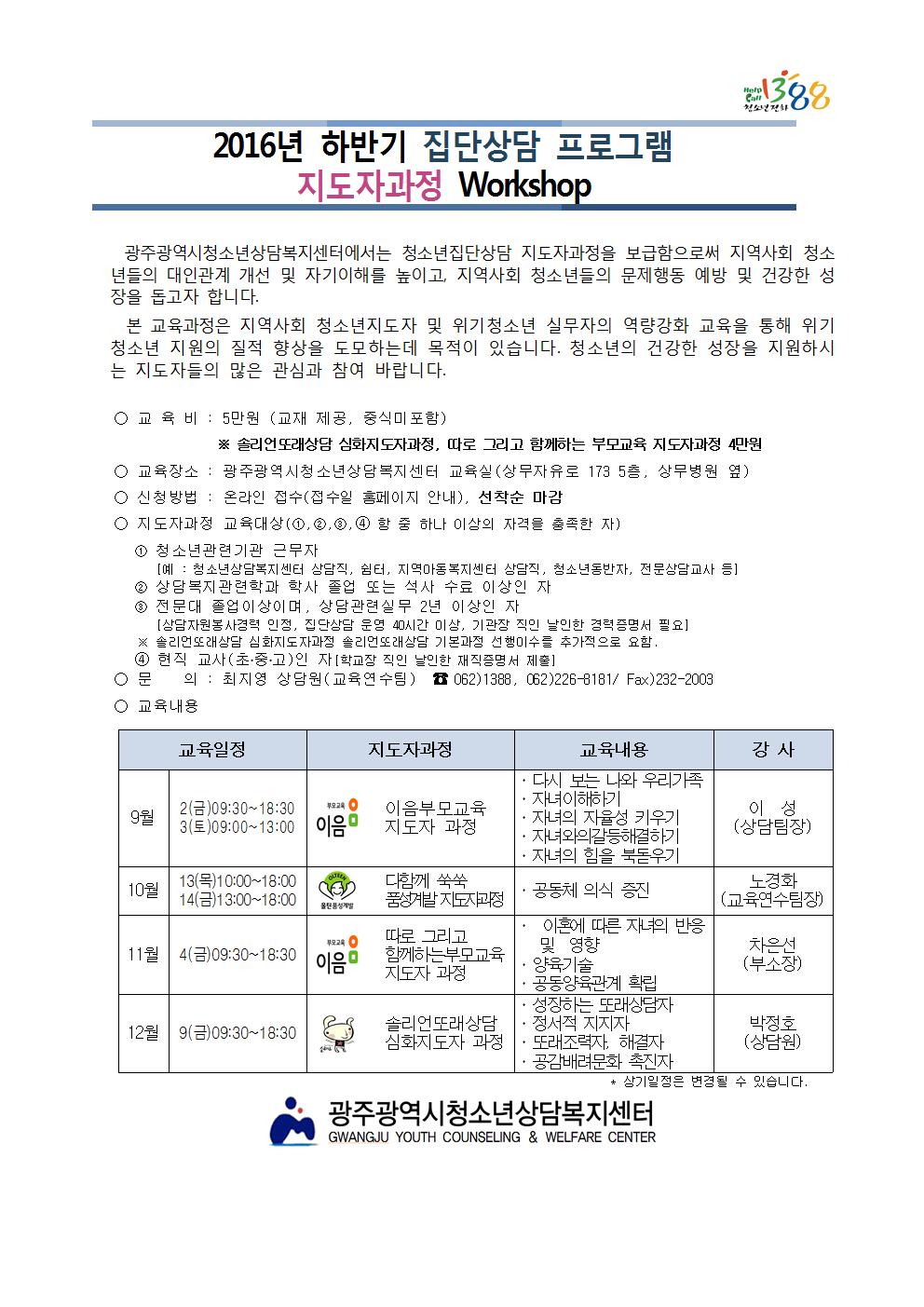 2016³â ÇϹݱâ Áý´Ü»ó´ã ÇÁ·Î±×·¥ ÁöµµÀÚ°úÁ¤ Workshop ¾È³»