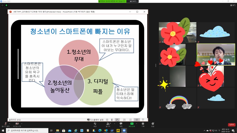 ¹ÚÁ¤È£ ±³À°¿¬¼öÆÀÀå´Ô°ú ÇÔ²²ÇÏ´Â ¿Â¶óÀÎ ºÎ¸ð±³À° 'Ä£ÇÑÀÚ'°¡ ÁøÇàµÇ¾ú½À´Ï´Ù.