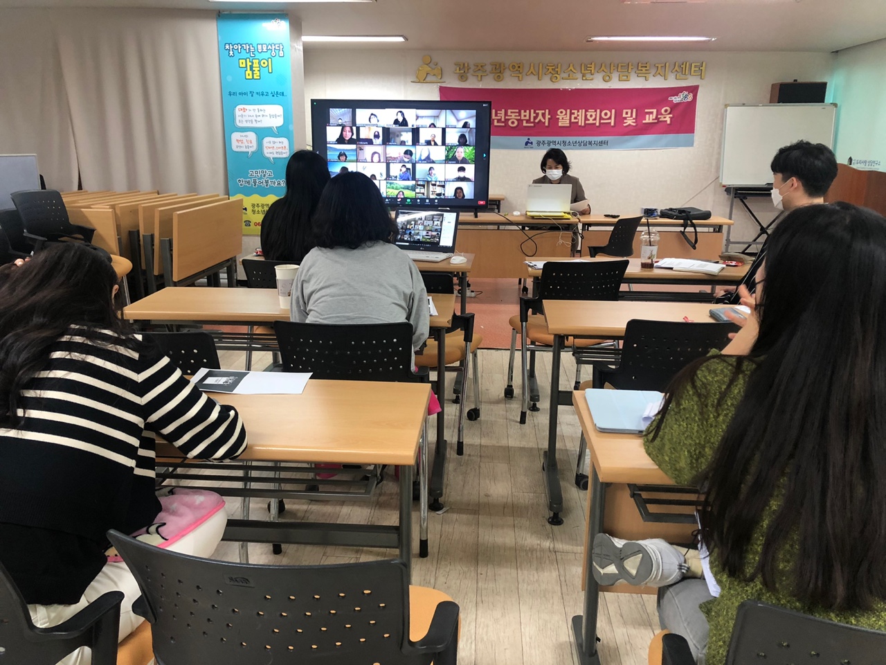½Ã/±¸ û¼Ò³â»ó´ãº¹Áö¼¾ÅÍ Ã»¼Ò³âµ¿¹ÝÀÚ ¼±»ý´Ôµé°ú ¿Â¶óÀÎ(Zoom È»óȸÀÇ)À¸·Î û¼Ò³âµ¿¹ÝÀÚ ¿ù·ÊȸÀǸ¦ ÁøÇàÇÏ¿´½À´Ï´Ù.