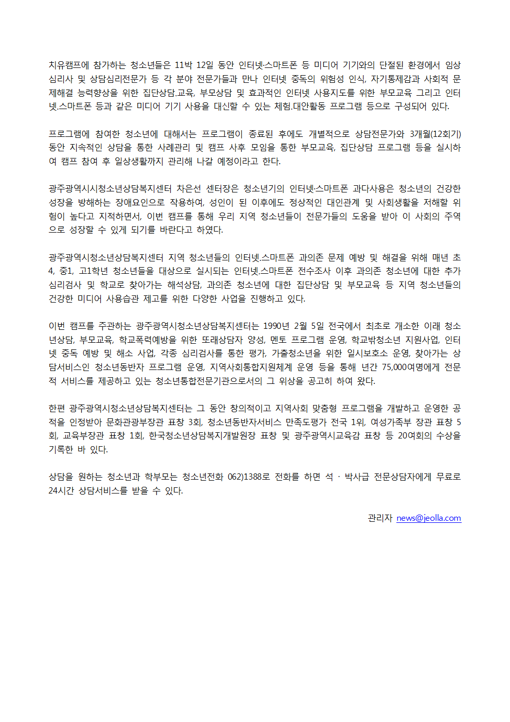 2018.07.20 [Àü¶ó´åÄÄ] ¿©¼º°¡Á·ºÎ ․ ±¤ÁÖ±¤¿ª½Ãû¼Ò³â»ó´ã¼¾ÅÍ, û¼Ò³â ÀÎÅͳݡ¤½º¸¶Æ®Æù Ä¡À¯Ä·ÇÁ °³ÃÖ
