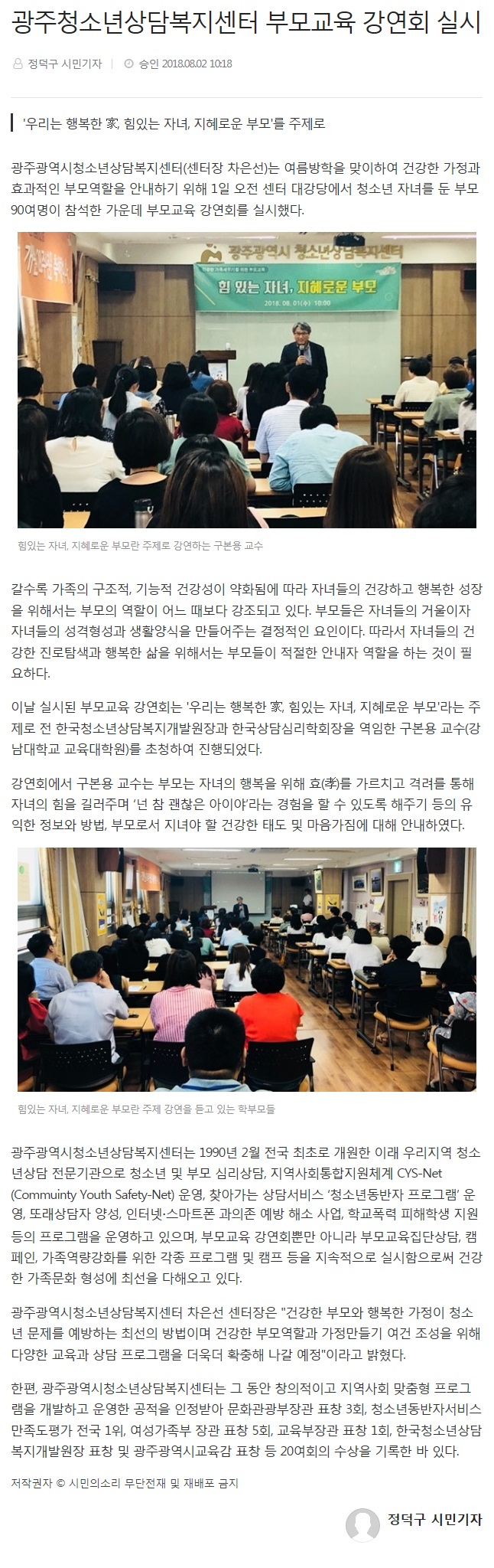 2018.08.02[½Ã¹ÎÀÇ ¼Ò¸®]±¤ÁÖ±¤¿ª½Ãû¼Ò³â»ó´ãº¹Áö¼¾ÅÍ ºÎ¸ð±³À° °¿¬È¸ ½Ç½Ã