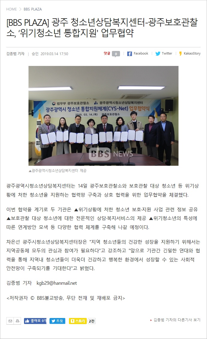 2019.03.14[BBS]±¤ÁÖ Ã»¼Ò³â»ó´ãº¹Áö¼¾ÅÍ-±¤ÁÖº¸È£°üÂû¼Ò, 'À§±âû¼Ò³â ÅëÇÕÁö¿ø' ¾÷¹«Çù¾à