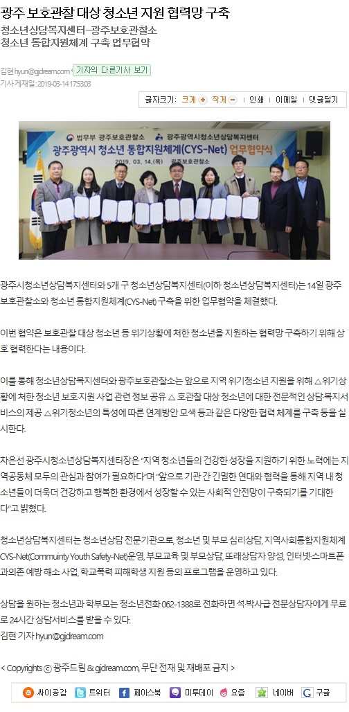 2019.03.14[±¤Áֵ帲]±¤ÁÖ º¸È£°üÂû ´ë»ó û¼Ò³â Áö¿ø Çù·Â¸Á ±¸Ãà