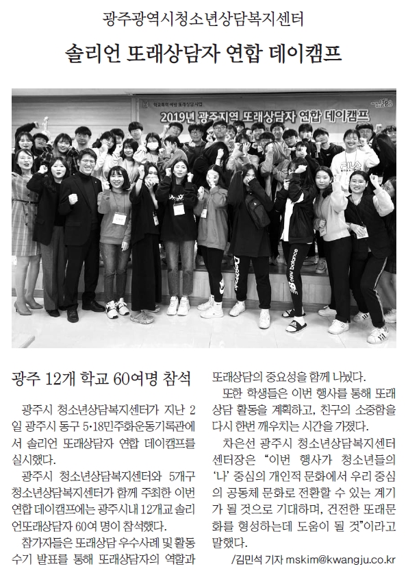 2019.11.06[±¤ÁÖÀϺ¸]±¤ÁÖ±¤¿ª½Ãû¼Ò³â»ó´ãº¹Áö¼¾ÅÍ ¼Ö¸®¾ð ¶Ç·¡»ó´ãÀÚ ¿¬ÇÕ µ¥ÀÌÄ·ÇÁ