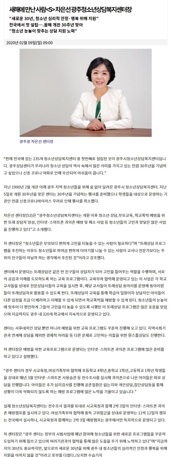 2020.02.09[Àü³²¸ÅÀÏ]»õÇØ¿¡ ¸¸³ »ç¶÷<5>Â÷Àº¼± ±¤ÁÖû¼Ò³â»ó´ãº¹Áö¼¾ÅÍÀå