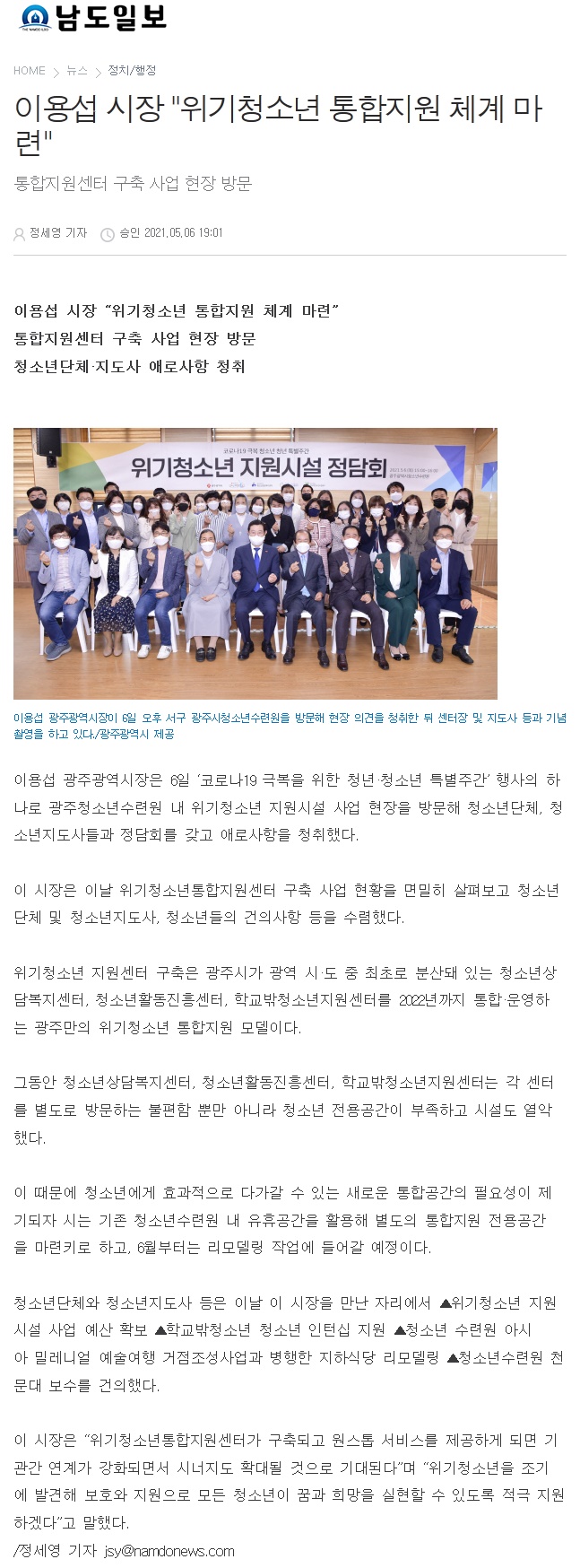 2021.05.06[³²µµÀϺ¸]À̿뼷 ½ÃÀå¡°À§±âû¼Ò³â ÅëÇÕÁö¿ø ü°è ¸¶·Ã¡±