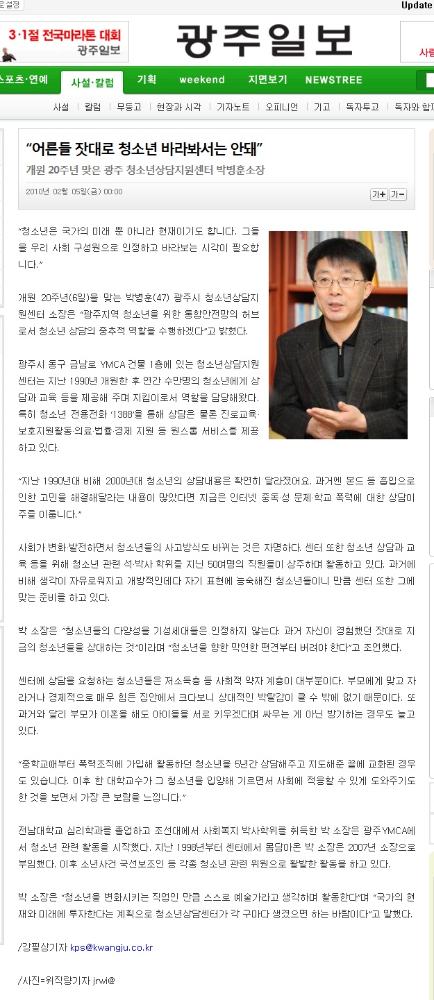 2.5[±¤ÁÖÀϺ¸]"¾î¸¥ Àã´ë·Î û¼Ò³âÀ» ¹Ù¶óºÁ¼± ¾ÈµÅ"